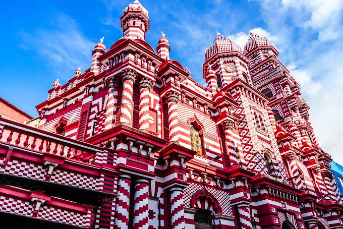 Construction of the Jami-Ul-Alfar Mosque commenced in 1908 and the building was completed in 1909.The mosque was commissioned by the local Indian Muslim community, based in Pettah, to fulfill their required five-times-daily prayer and Jummah on Fridays. The mosque’s designer and builder was Habibu Lebbe Saibu Lebbe (an unlettered architect), and was based on details/images of Indo-Saracenic structures provided by South Indian traders, who commissioned him. It is a hybrid style of architecture, that draws elements from native Indo-Islamic and Indian architecture, and combines it with the Gothic revival and Neo-classical styles. Originally it had the capacity for 1,500 worshippers although at the time only around 500 were attending prayers.